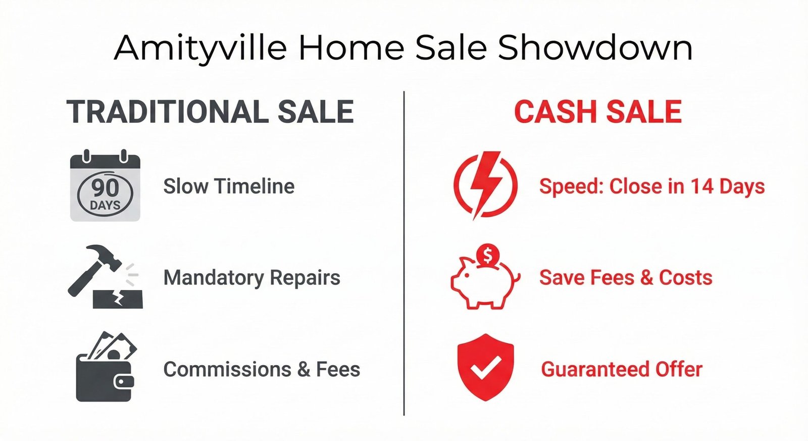 Saving on Commissions and Fees: When you sell to us, you are saving thousands of dollars on agent commissions, which usually take a massive six percent chunk out of your equity. This is why many savvy homeowners prioritize finding out how to sell my house fast in Amityville NY through a direct buyer instead of a broker.