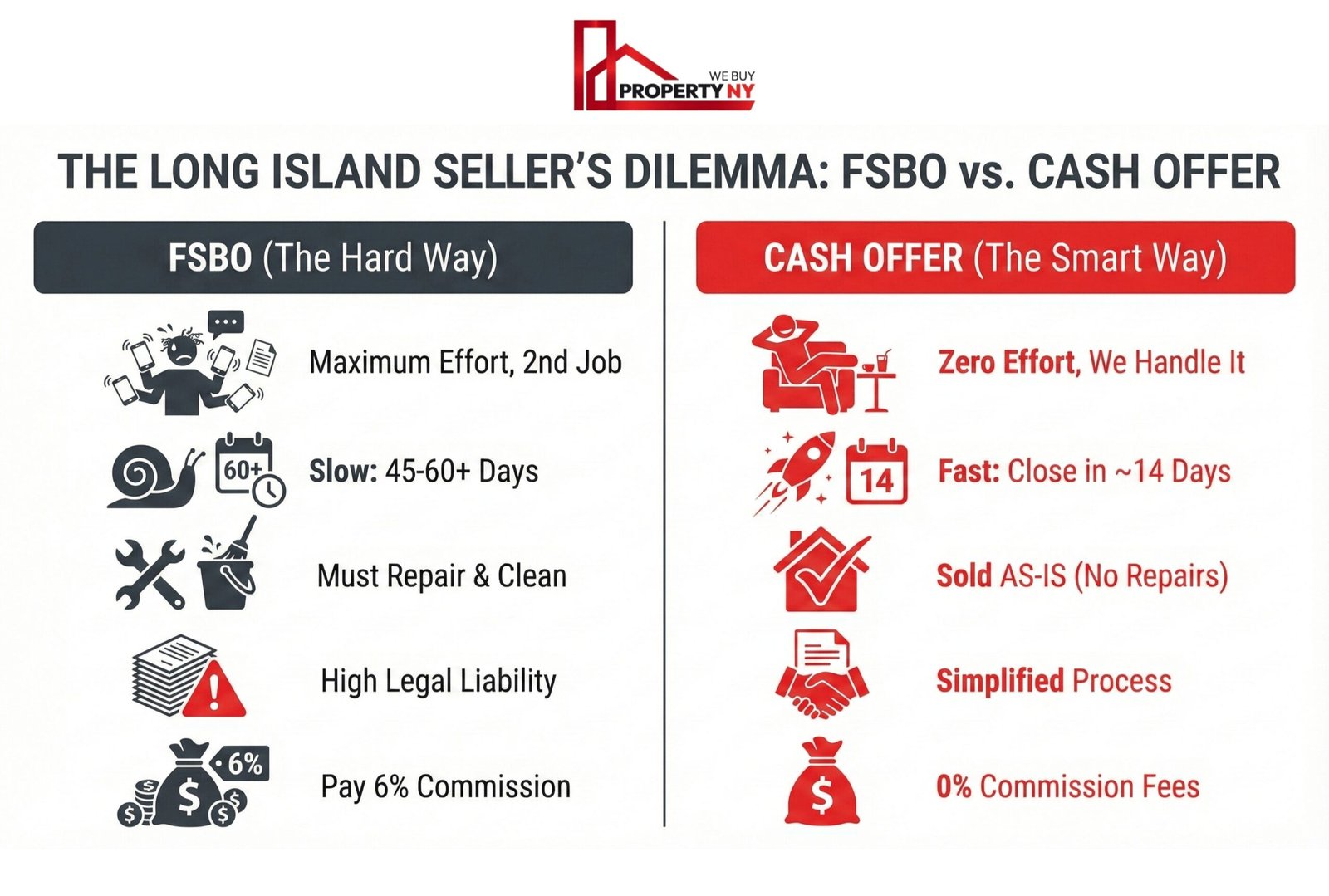 Saving 6% commission sounds good, but FSBO on Long Island is often a marketing nightmare and a legal trap.